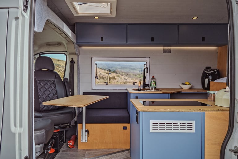 Heating - Fitted with a Truma combi boiler the van is self-sufficient and incredibly comfortable, even when it is well down below freezing outside. This can be set via a thermostat to your desired temperature.